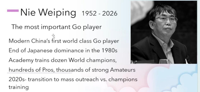 原址:https://www.usgo.org/content.aspx?page_id=5&club_id=454497&item_id=130756原题:Nie Weiping (1952–2026): The Player Who Restored China’s Place in World Go